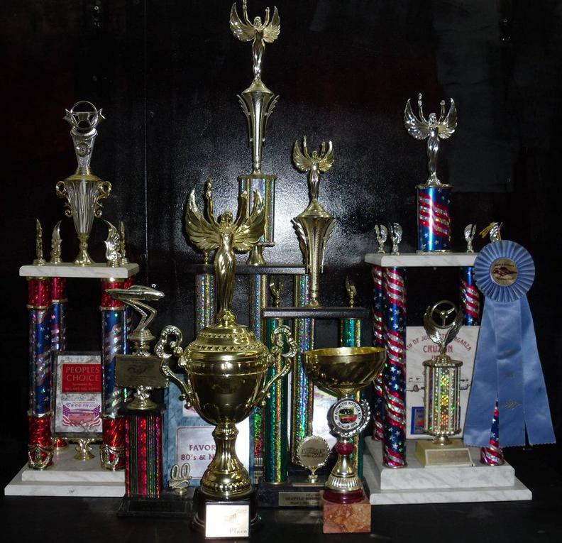 A few trophies from doing car shows one year. Over the 25 years building and painting custom cars. My work has won over 2000 awards and trophies. Including 3 Chrysler choice awards.