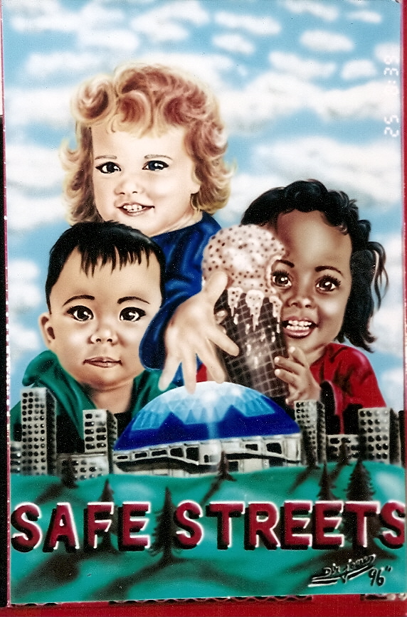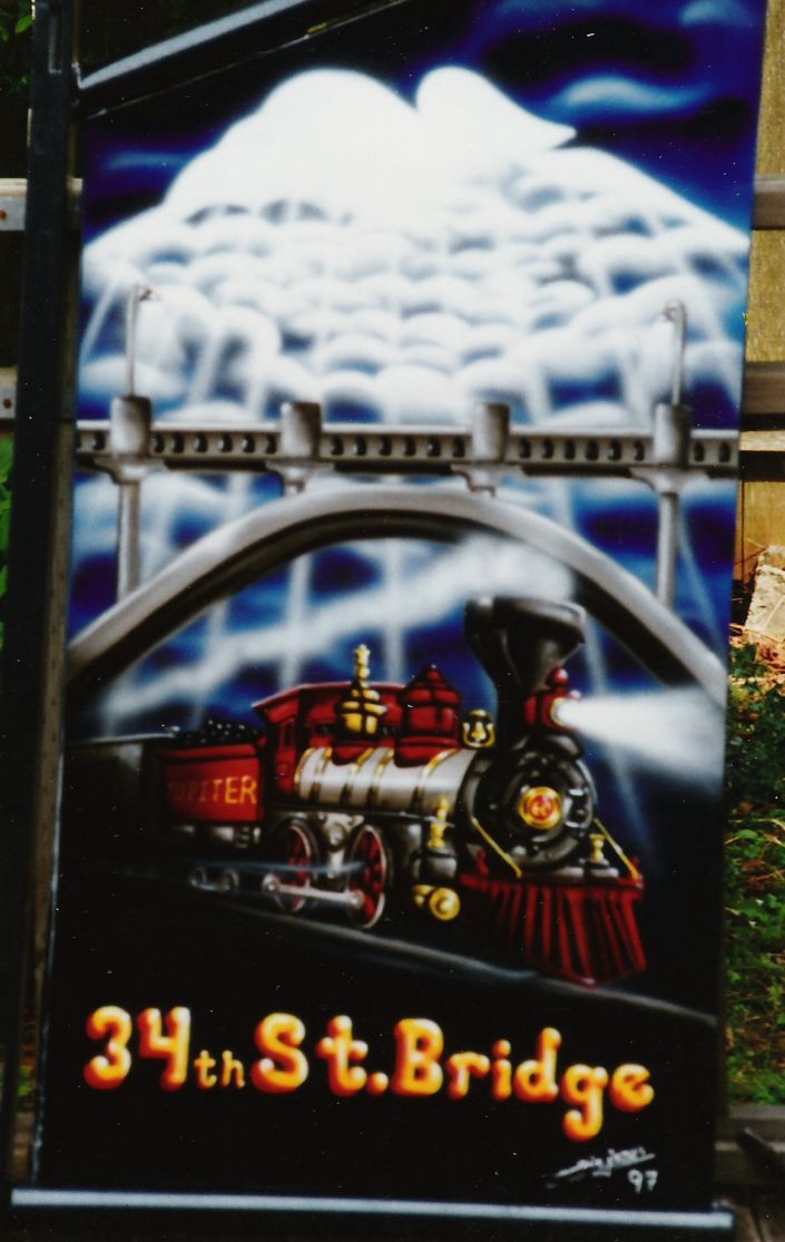 Below are some banners and murals I did around the city of Tacoma back in the mid 90's. Many of the banners are still hanging up on poles today. Which is ironic since the city decided to hire others to do banners after complaining I charged too much, even though I volunteered to do all the banners, and just charged them cost of materials. Karma is a bitch as the other banner companies ended up costing the city more. AND, to top it off no one else's banners lasted more then a year. So had to be replaced annually until funding was cut. Meanwhile 25 years later, my banners are still up. Haha